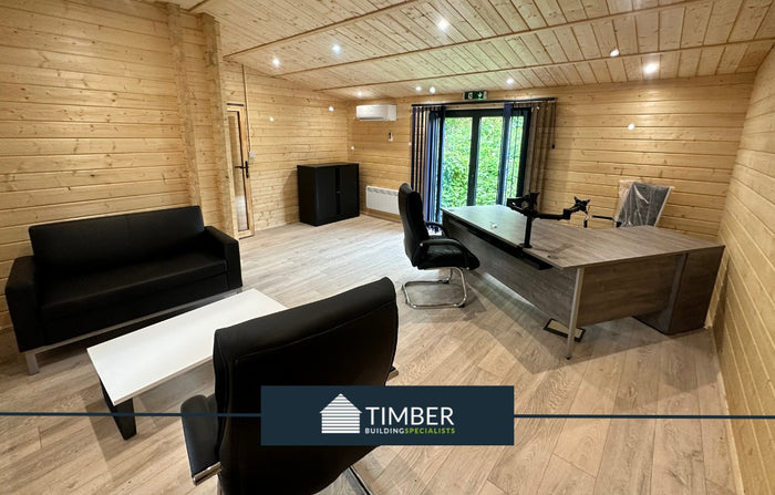 A premium 7m x 4m garden office with 70mm logs, superior insulation, and modern tilt and turn windows, designed for year-round remote working.